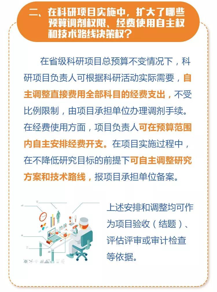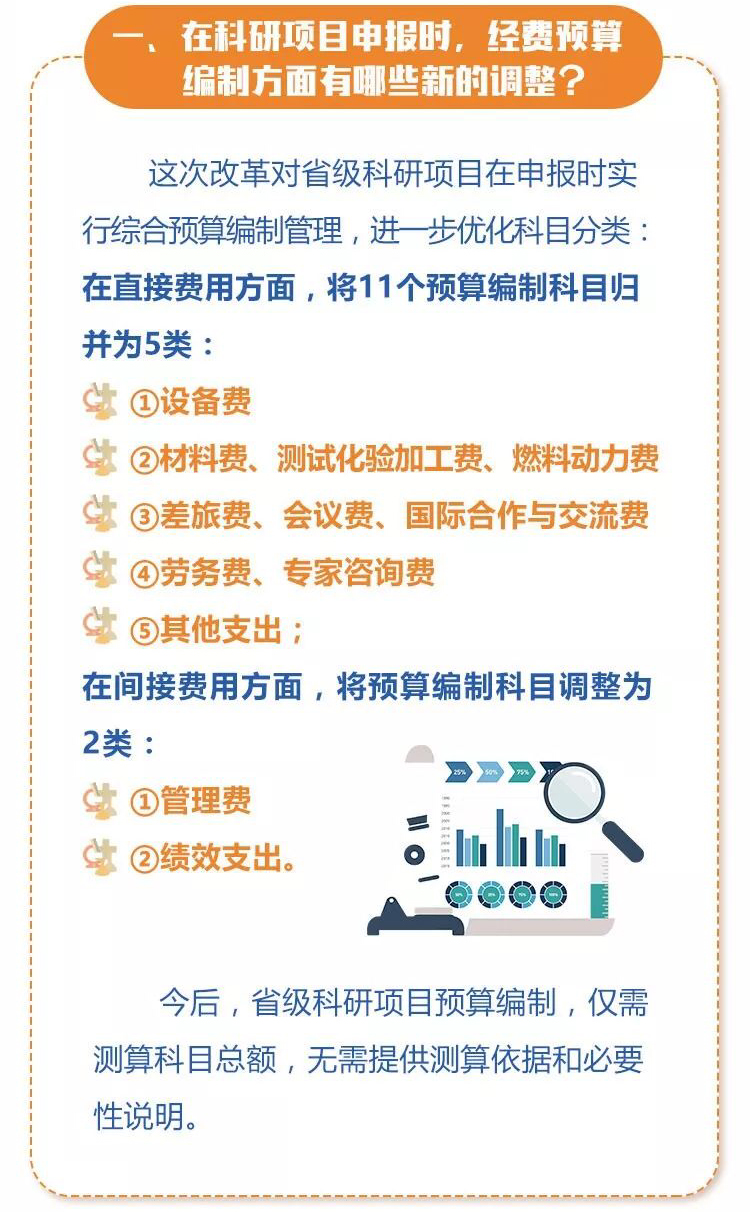 那么,在這次的科研項目管理改革中,項目經費預算環節有哪些新的調整?項目經費的使用有哪些新的放寬措施?項目資金撥付和留用處理方式作了哪些改進?項目績效評價有哪些新的規定?……這些新的變化,作為科研人員的您都知道了嗎?