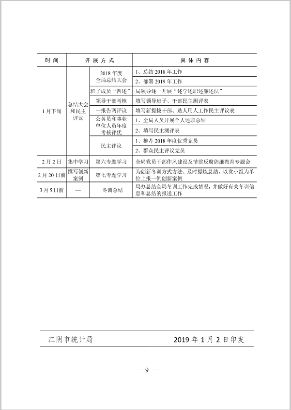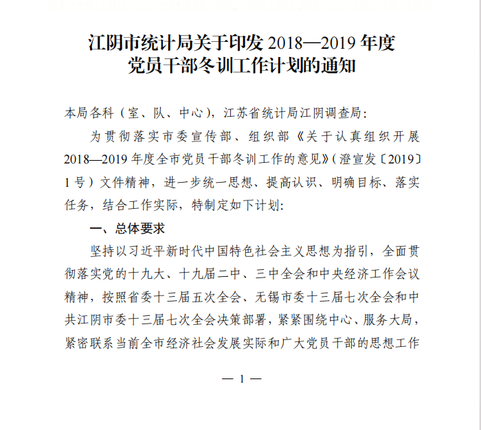 | 內容概述 | 江陰市統計局關于印發2018-2019年度黨員干部冬訓工作計劃的通知 | ||||