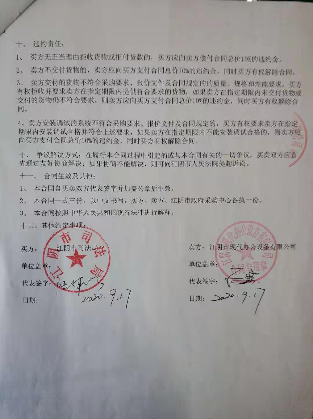 江陰市司法局應急指揮平臺音視頻通訊子系統項目詢價、成交結果公告及采購合同公開