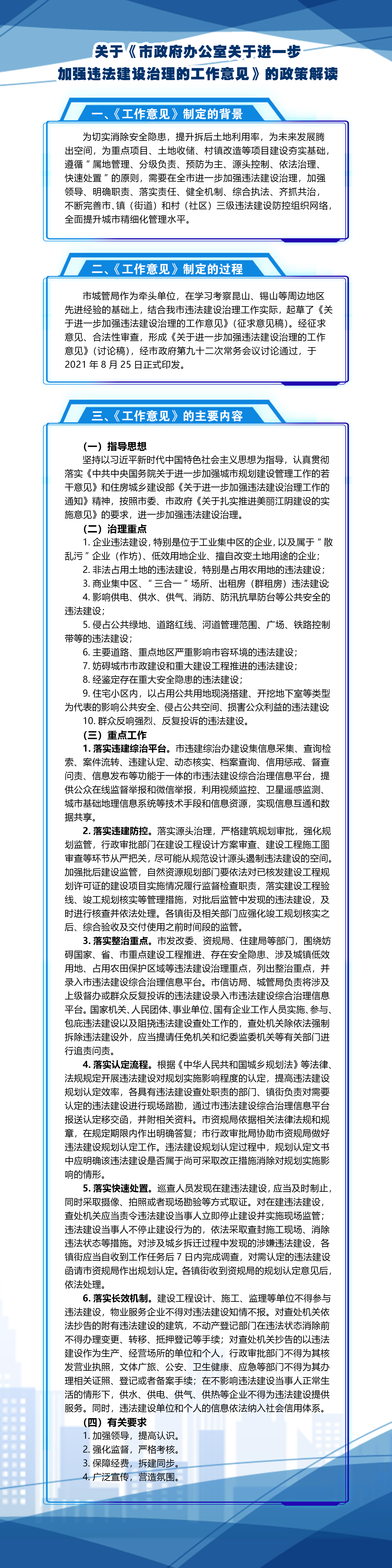 一圖讀懂《市政府辦公室關于進一步加強違法建設治理的工作意見》
