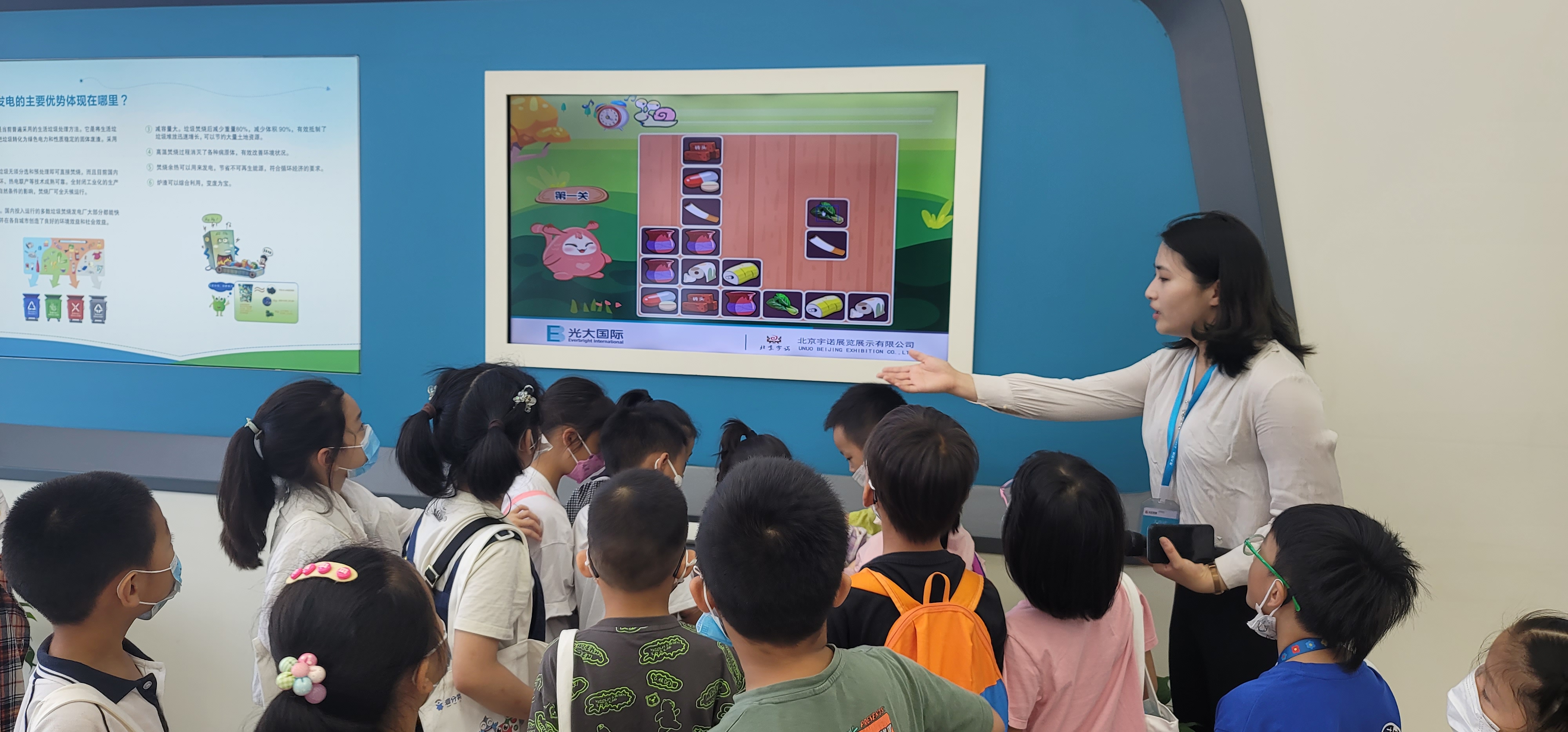 在去參觀的路上,市城市綜合管理局環衛中心垃圾分類科科長張穎介紹了生活垃圾以及如何分類的知識。第一站,學生和市民代表們來到了光大環保能源公司會議室,一起觀看了垃圾分類宣傳片。視頻展示了光大電廠項目建設、生產工藝、垃圾處理成本以及爐渣、煙氣、滲濾液、飛灰處理等情況。工作人員還在現場為學生們安排了有獎知識問答,同學們踴躍答題,學習到了不少垃圾分類的知識。