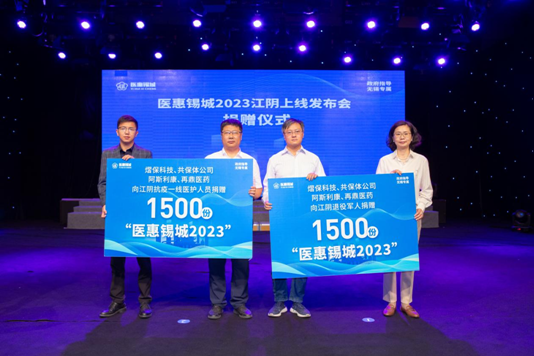 發布會上,熠??萍?、國聯人壽還代表“醫惠錫城”共保體單位向江陰抗疫一線醫護人員及退役軍人分別捐贈1500份“醫惠錫城2023”產品,向白衣天使和最可愛的人獻上一份健康關愛。