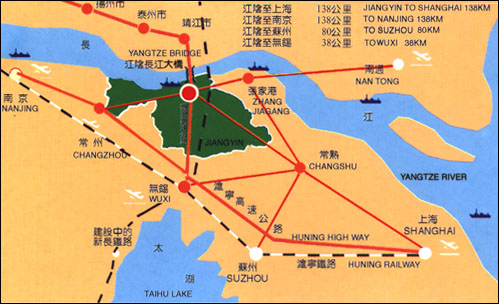 【地理位置】 江陰市位于北緯31°40′34″至31°57′36″、東經119°59′至120°34′30″。北枕長江,南近太湖,東接常熟、張家港,西連常州,地處蘇錫常“金三角”幾何中心,交通便捷,歷來為大江南北的重要交通樞紐和江海聯運、江河換裝的天然良港。