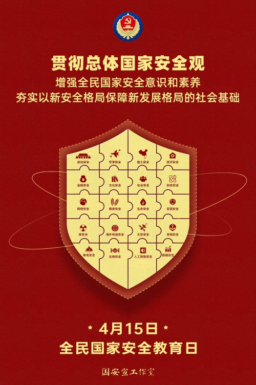你知道嗎?《中華人民共和國國家安全法》第十四條明確規定,每年的4月15日是全民國家安全教育日。今年的4月15日是第八個全民國家安全教育日,主題是“貫徹總體國家安全觀,增強全民國家安全意識和素養,夯實以新安全格局保障新發展格局的社會基礎。”讓我們通過下面的海報一起學習下相關知識吧!