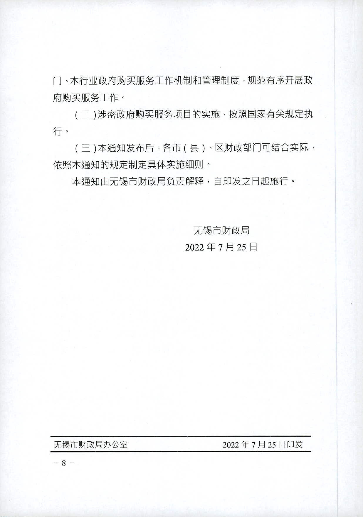 為進一步規范政府購買服務行為,改善公共服務供給水平和效率,提高財政資金使用效益,現將無錫市財政局《關于進一步加強和規范政府購買服務管理的通知》(錫財購〔202214號)文件轉發給你們,請遵照執行。