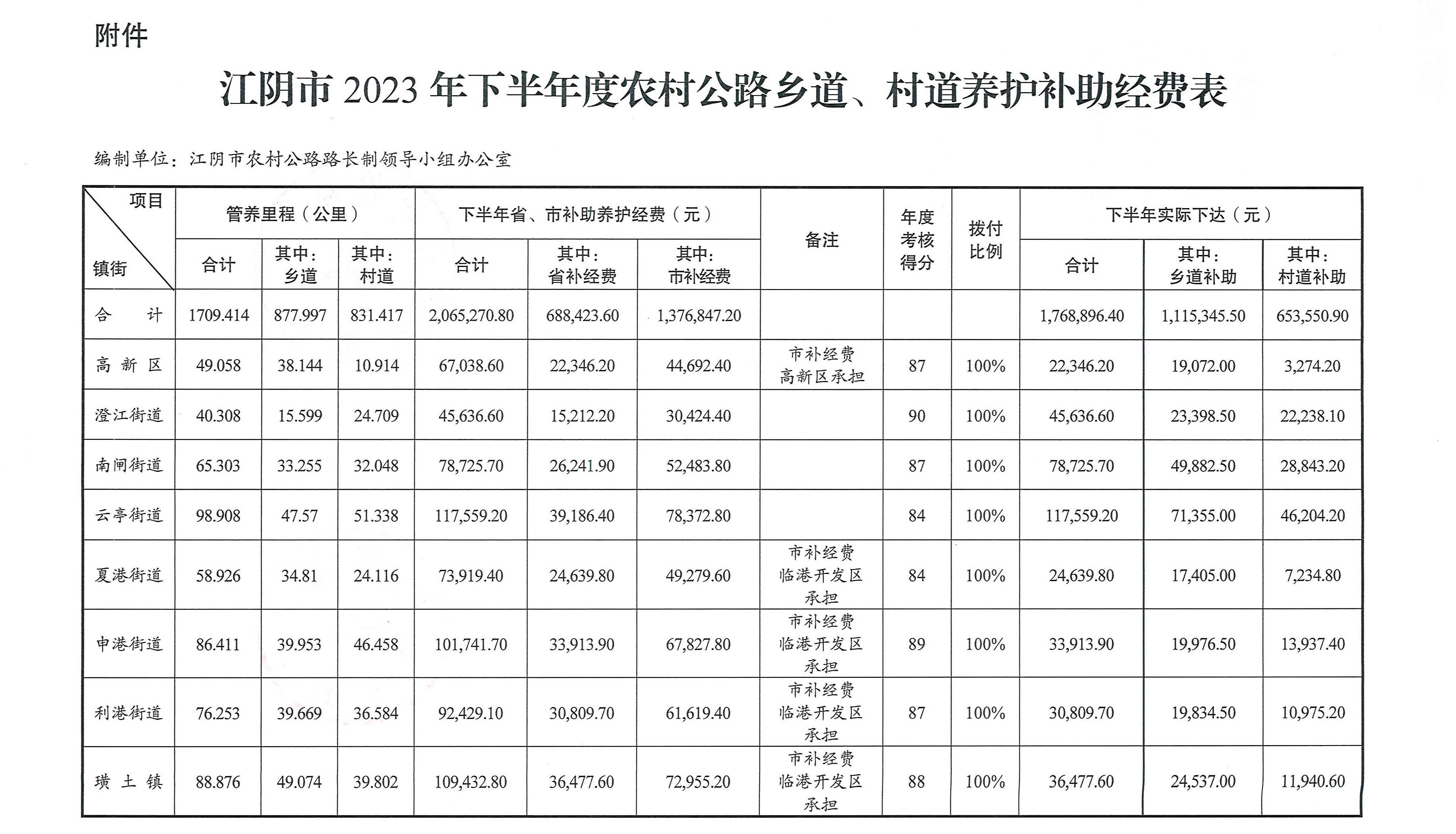 關于下達2023年下半年度農村公路養護補助經費的通知
