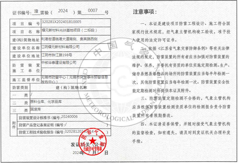 首頁>>市氣象局 > 行政權力 > 防雷裝置驗收合格證公示