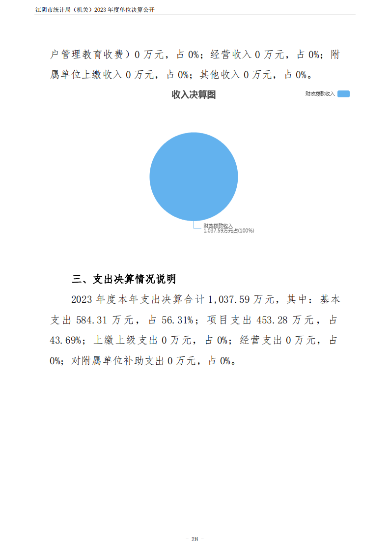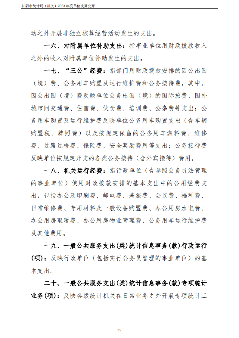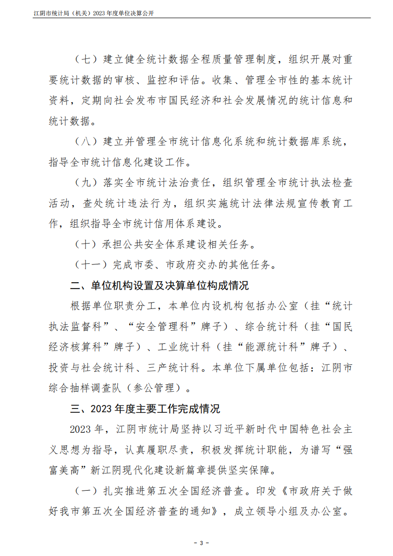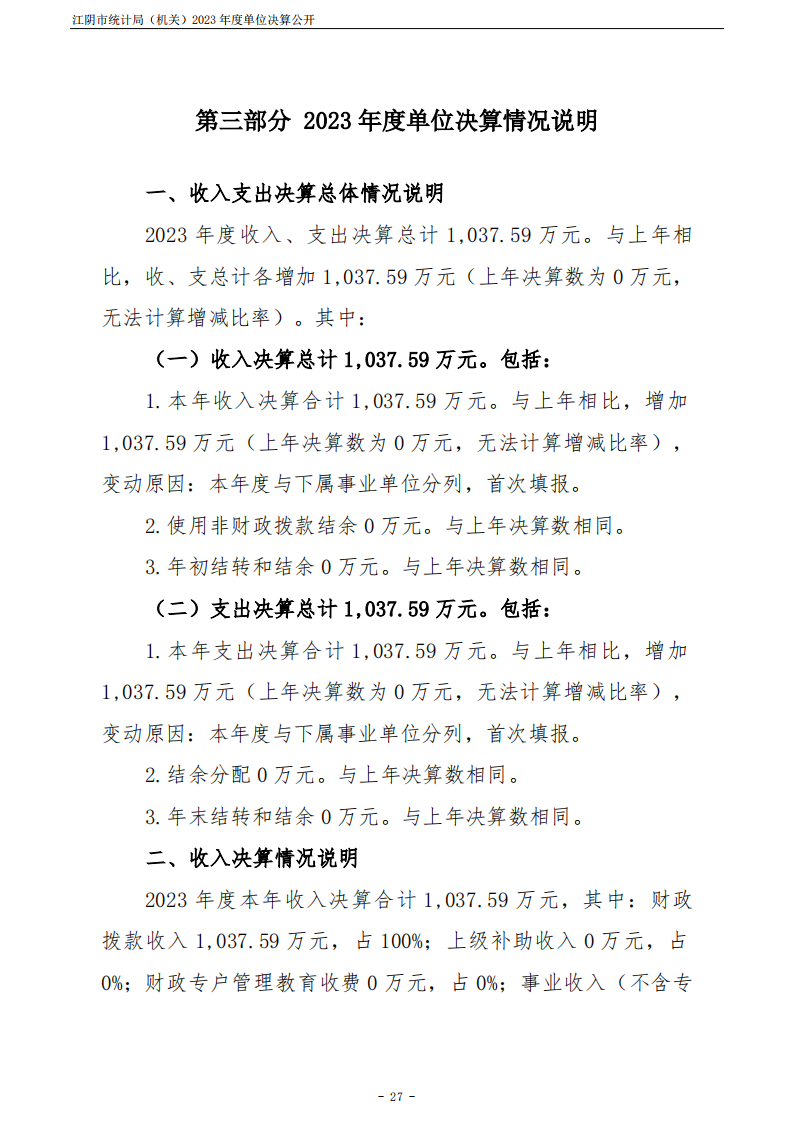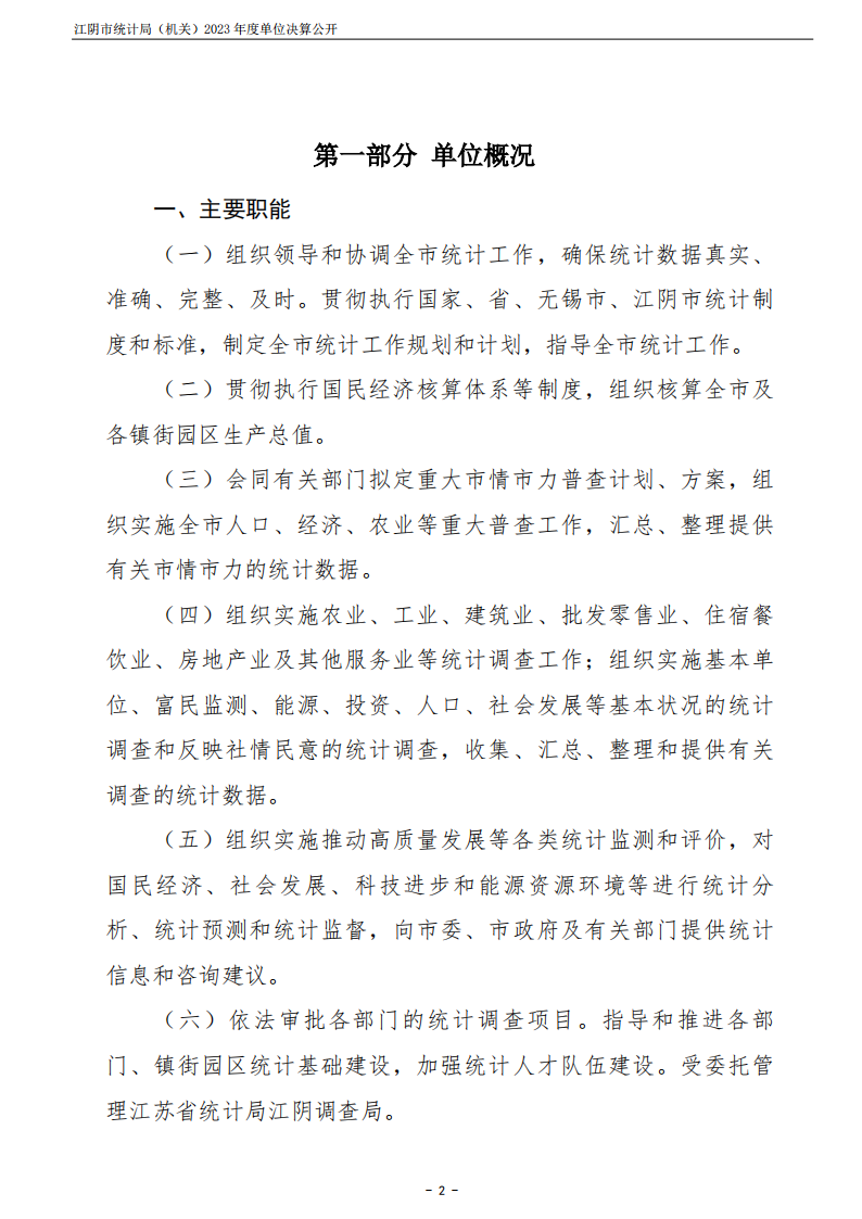 內容概述 江陰市統計局(機關)2023年度單位決算公開