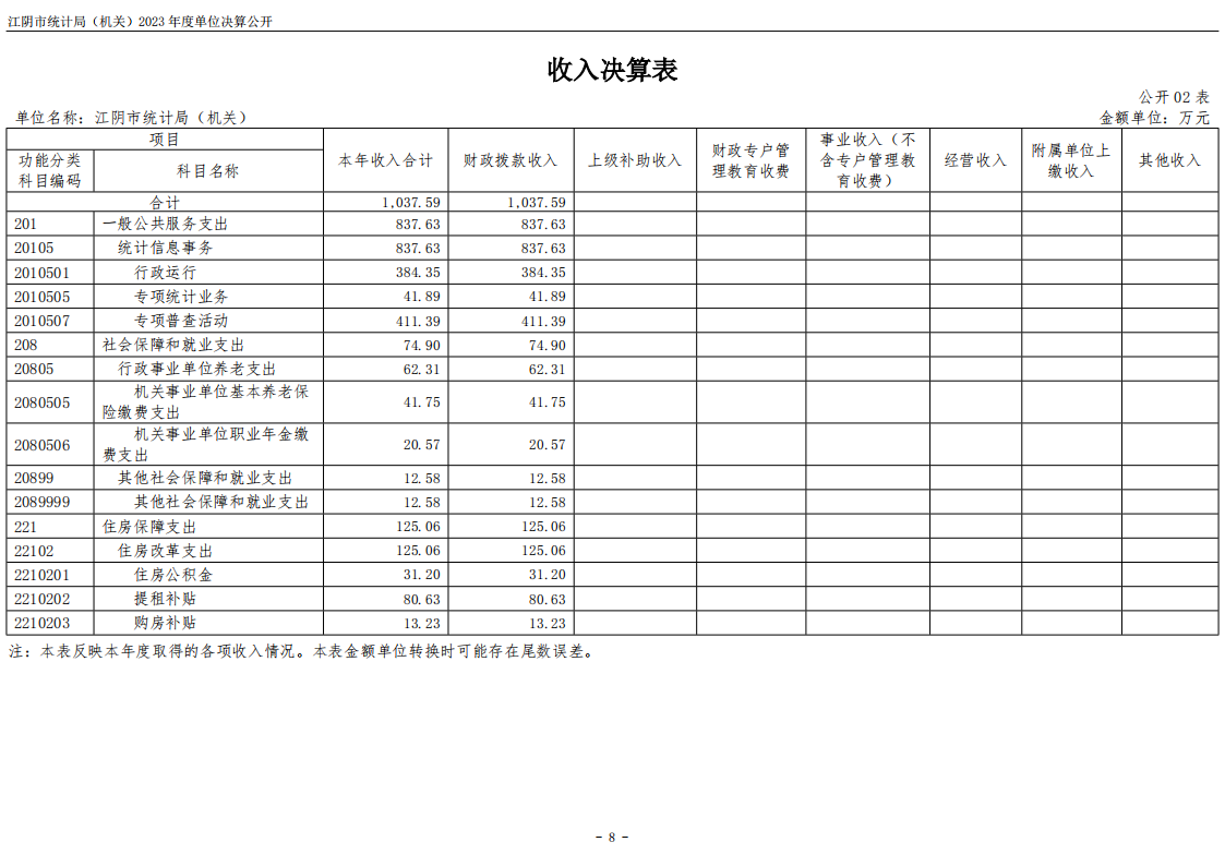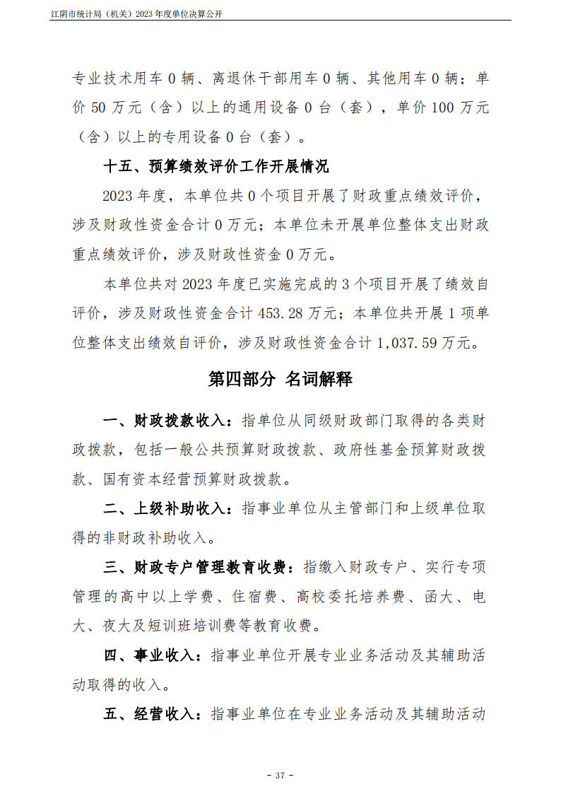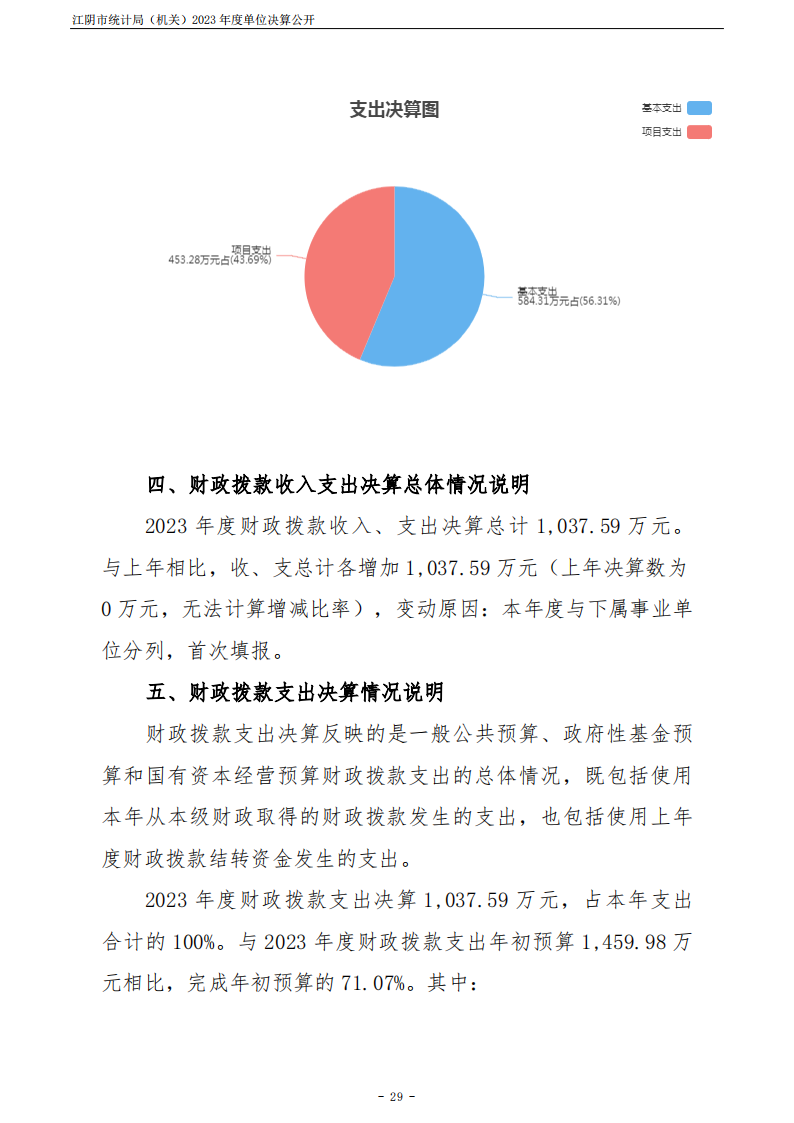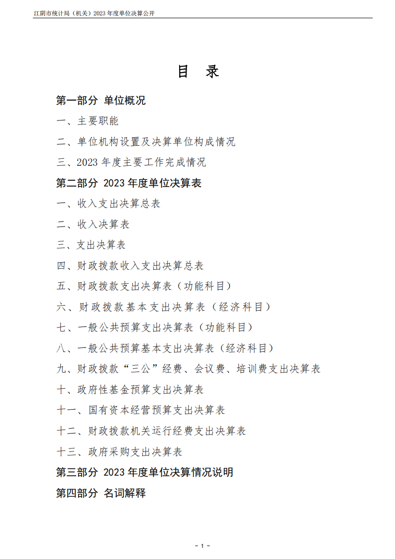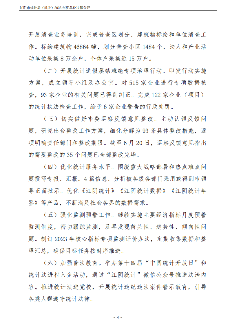 內容概述 江陰市統計局(機關)2023年度單位決算公開