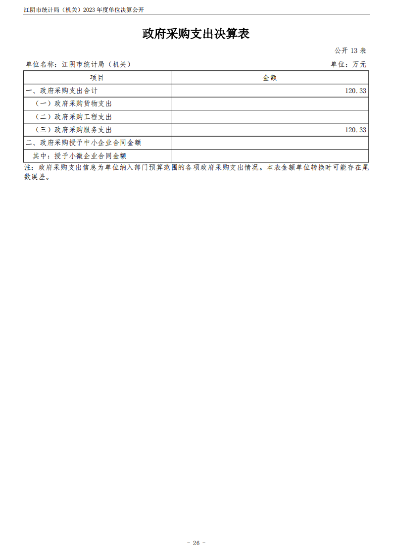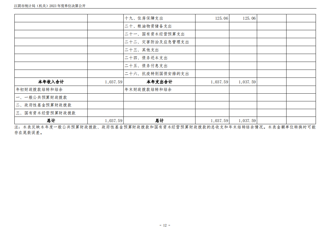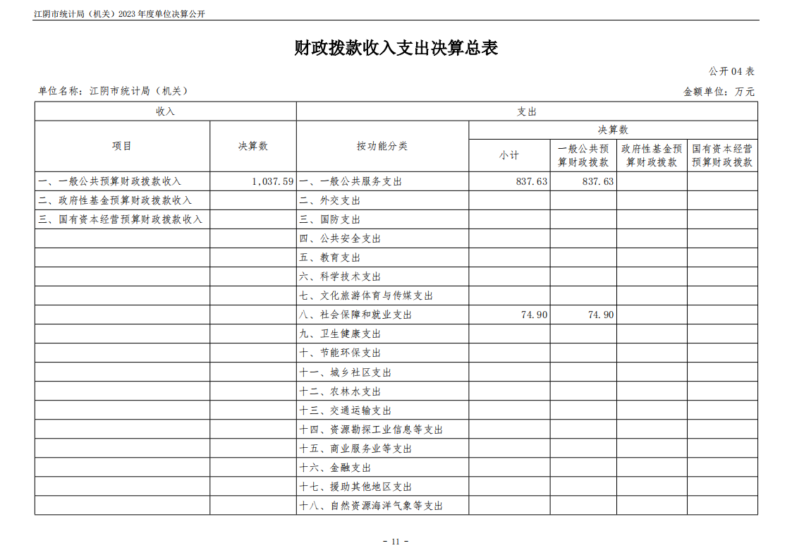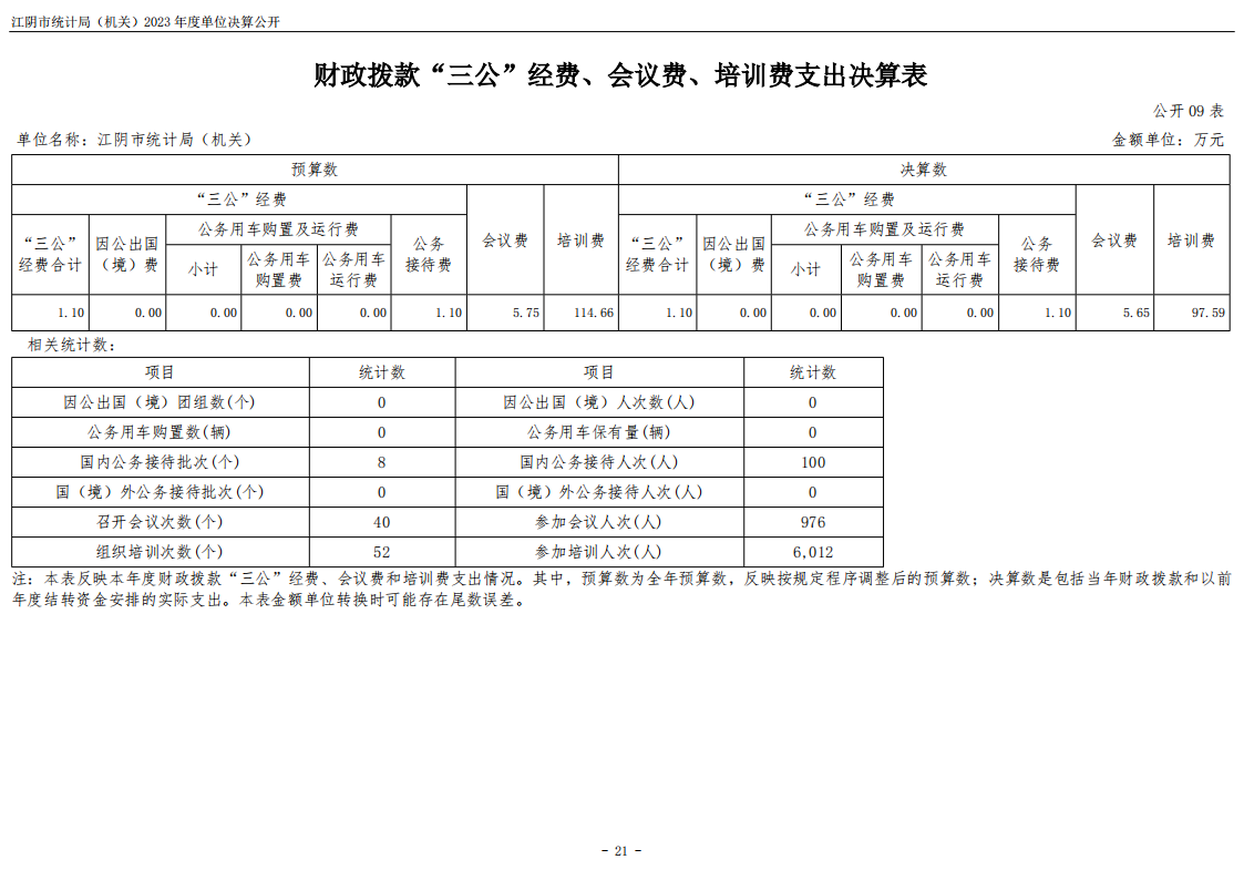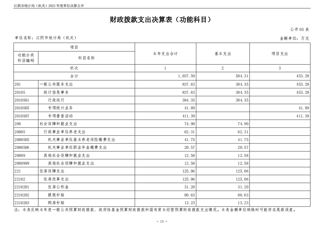 內容概述 江陰市統計局(機關)2023年度單位決算公開