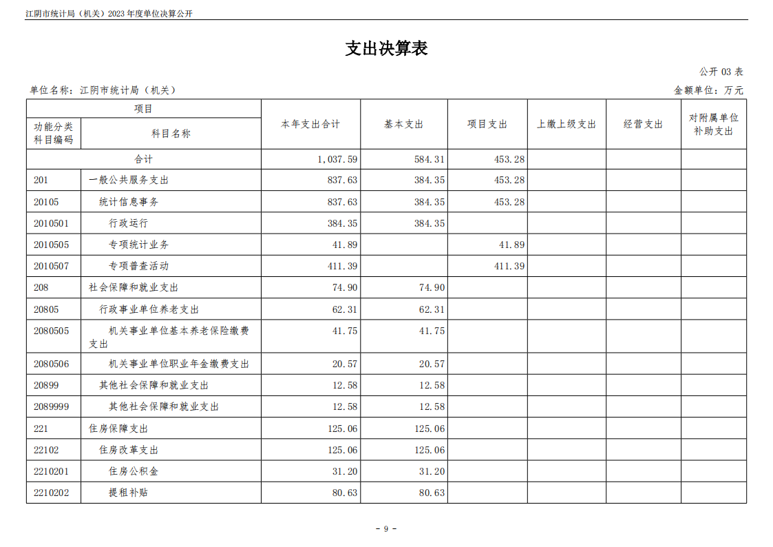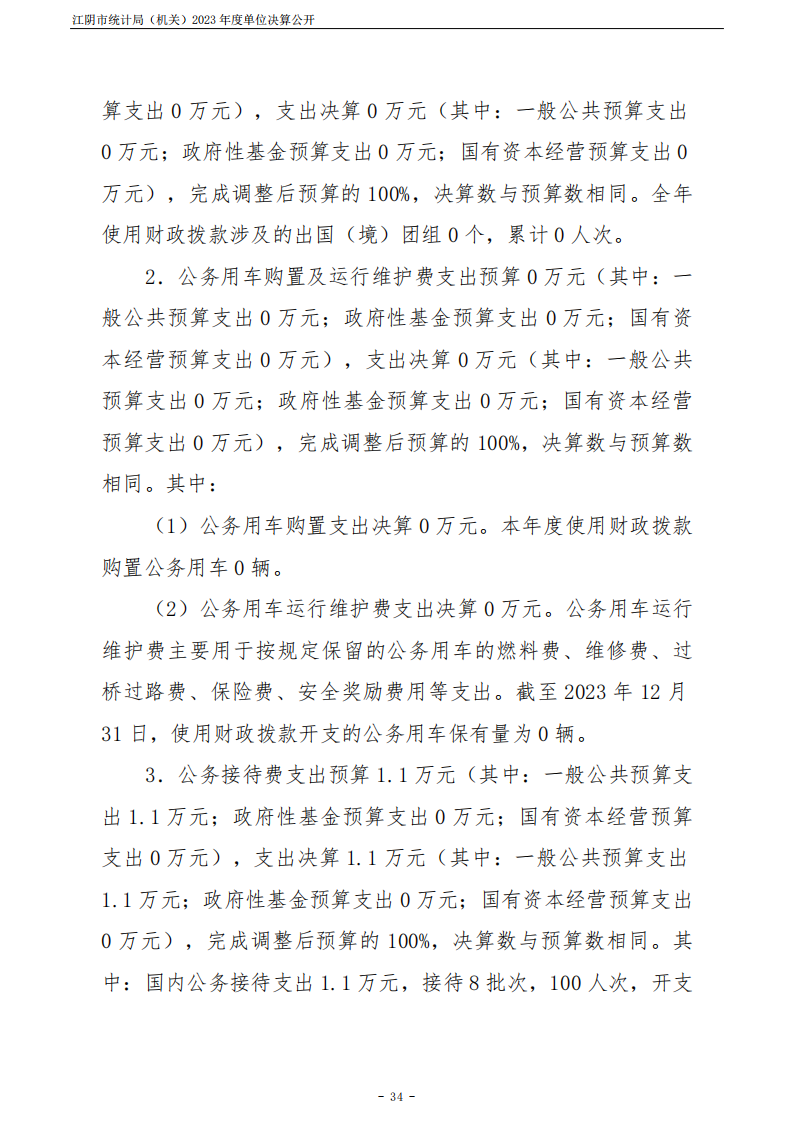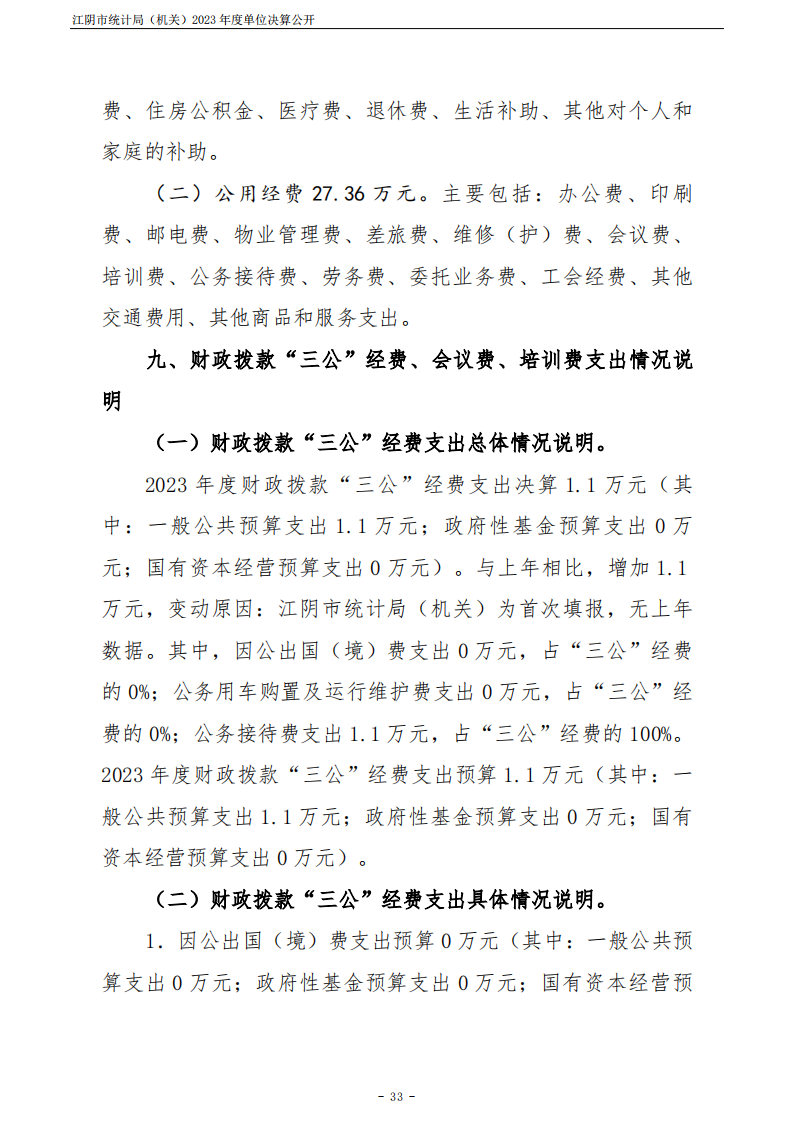 江陰市統計局(機關)2023年度單位決算公開