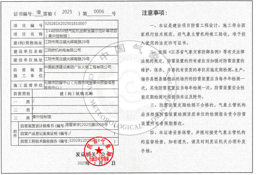 | 江陰燃機熱電有限公司 |
