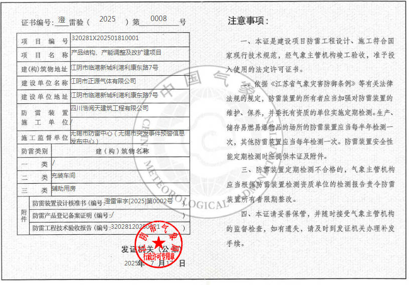 首頁>>市氣象局 > 行政權力 > 防雷裝置驗收合格證公示