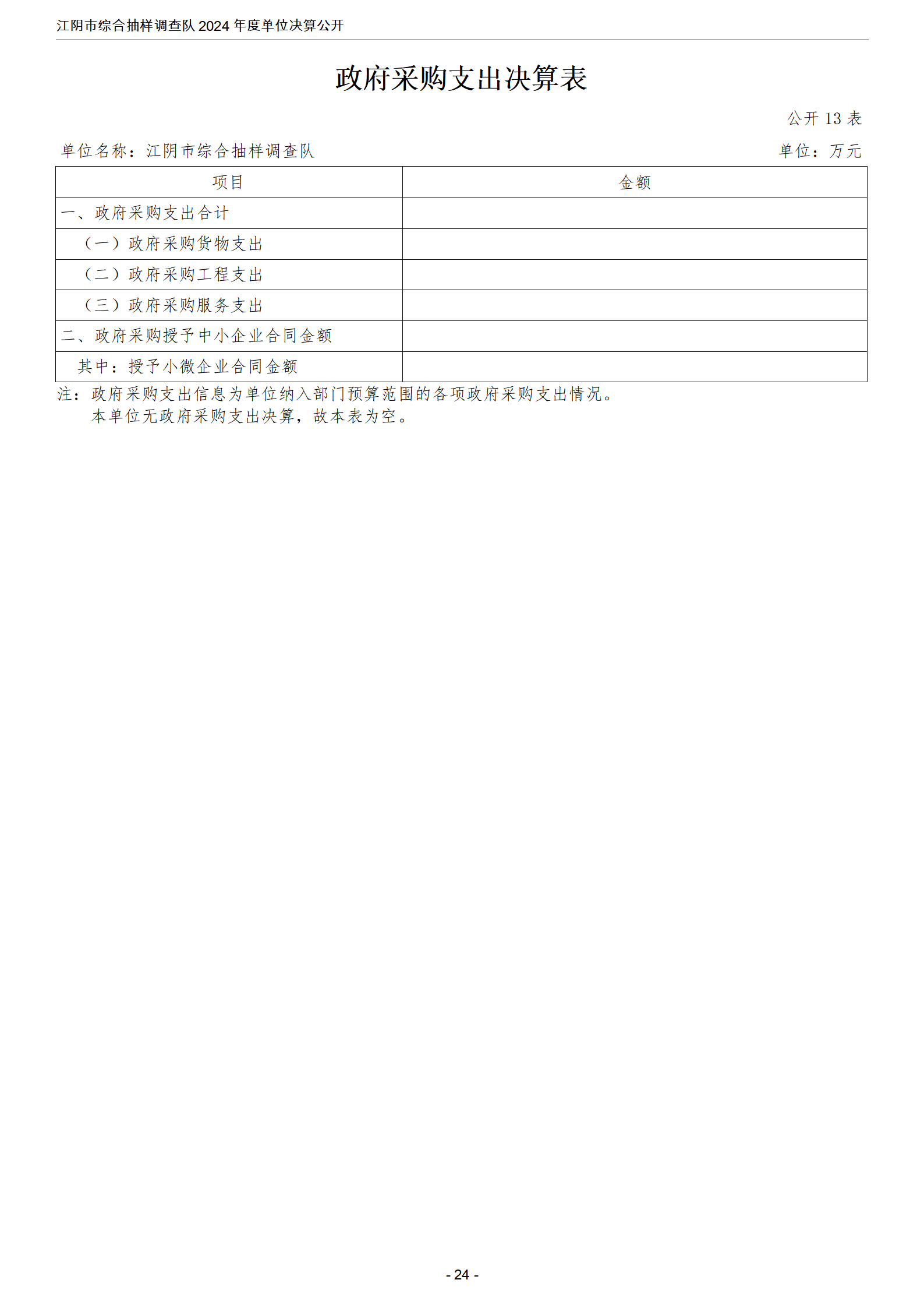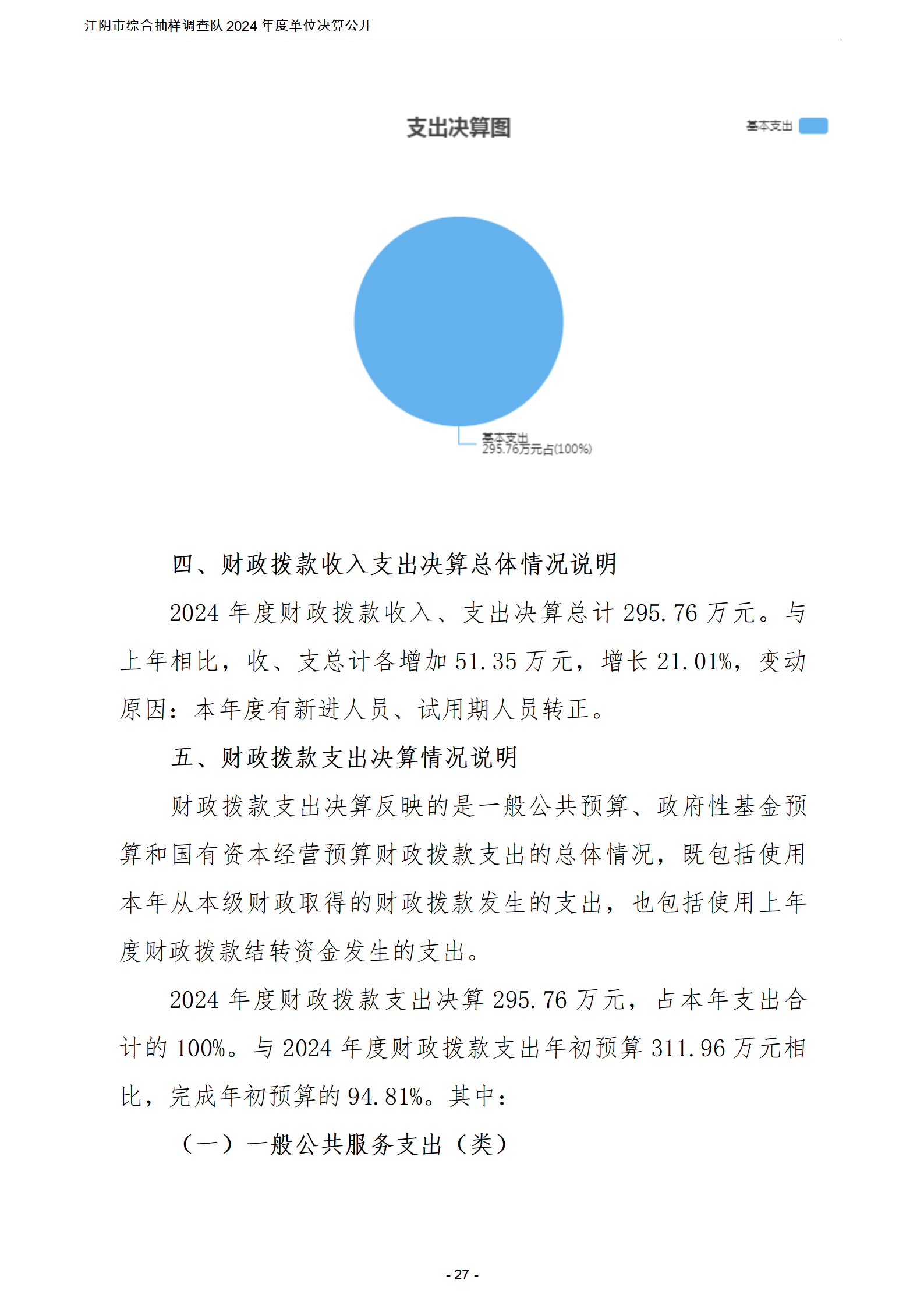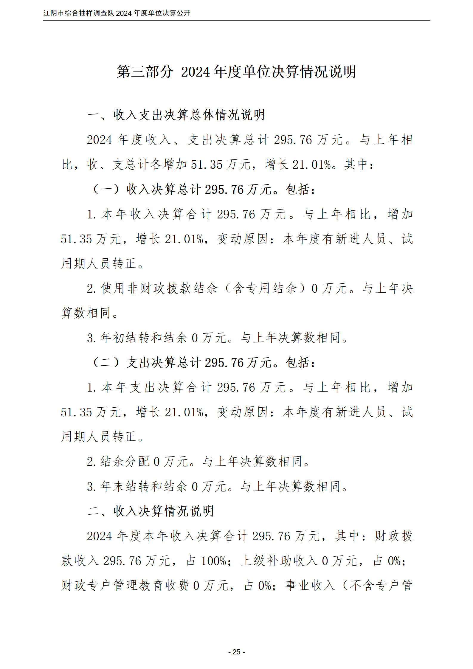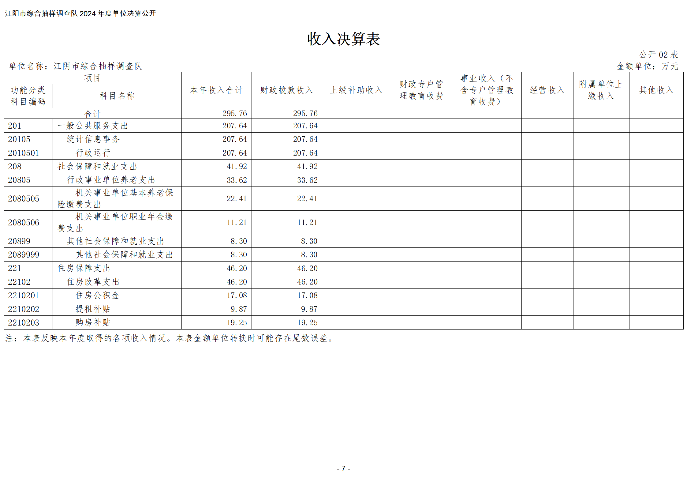 江陰市綜合抽樣調查隊2024年度單位決算公開