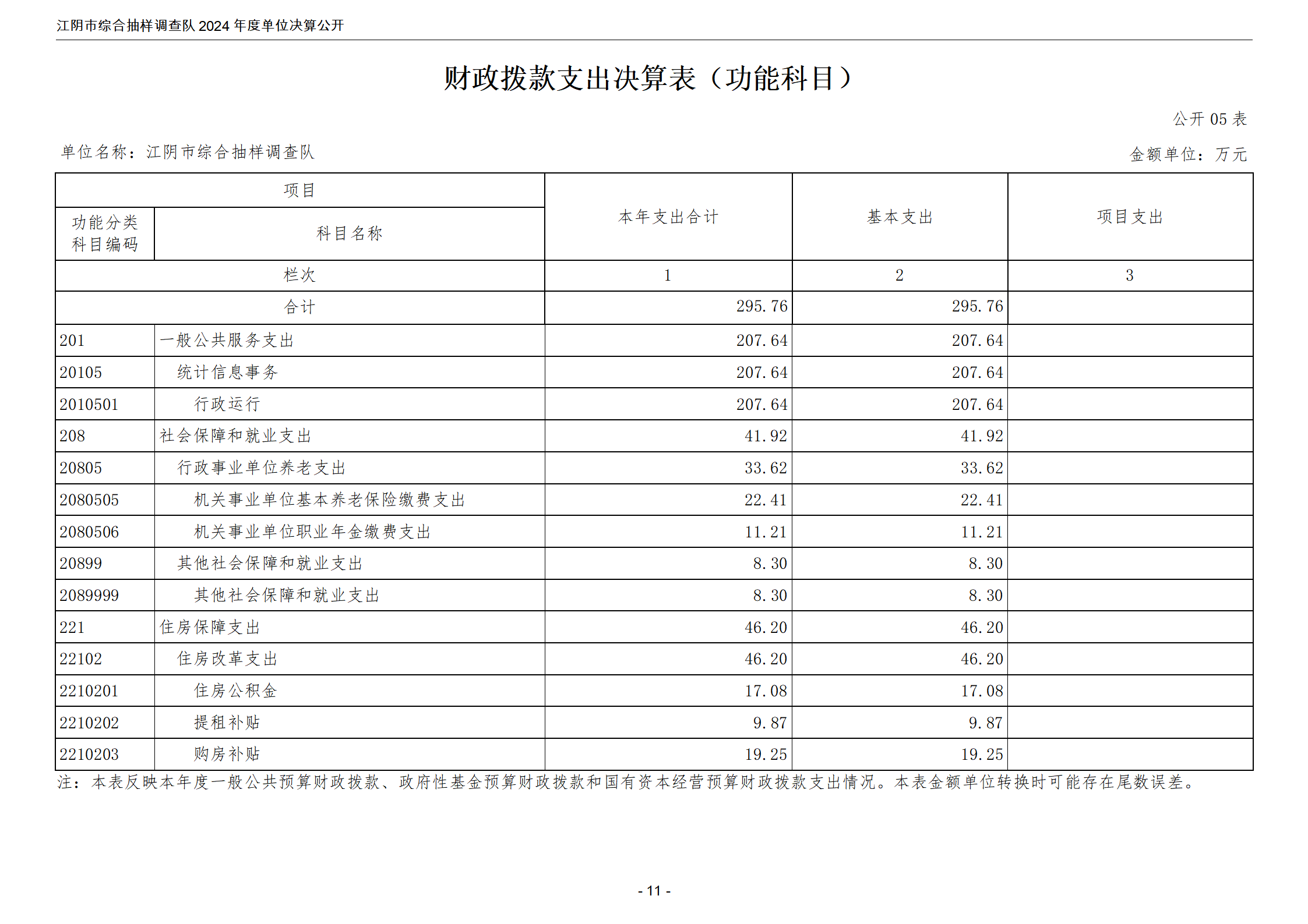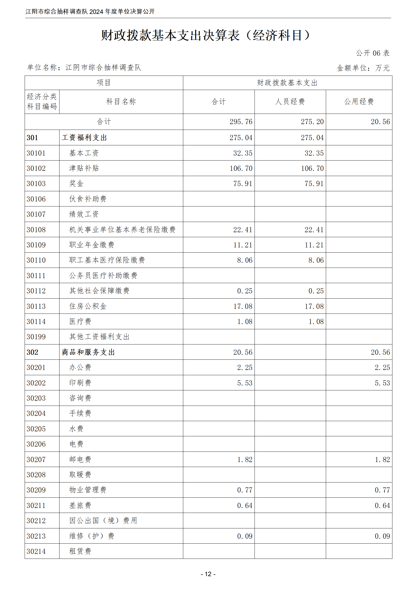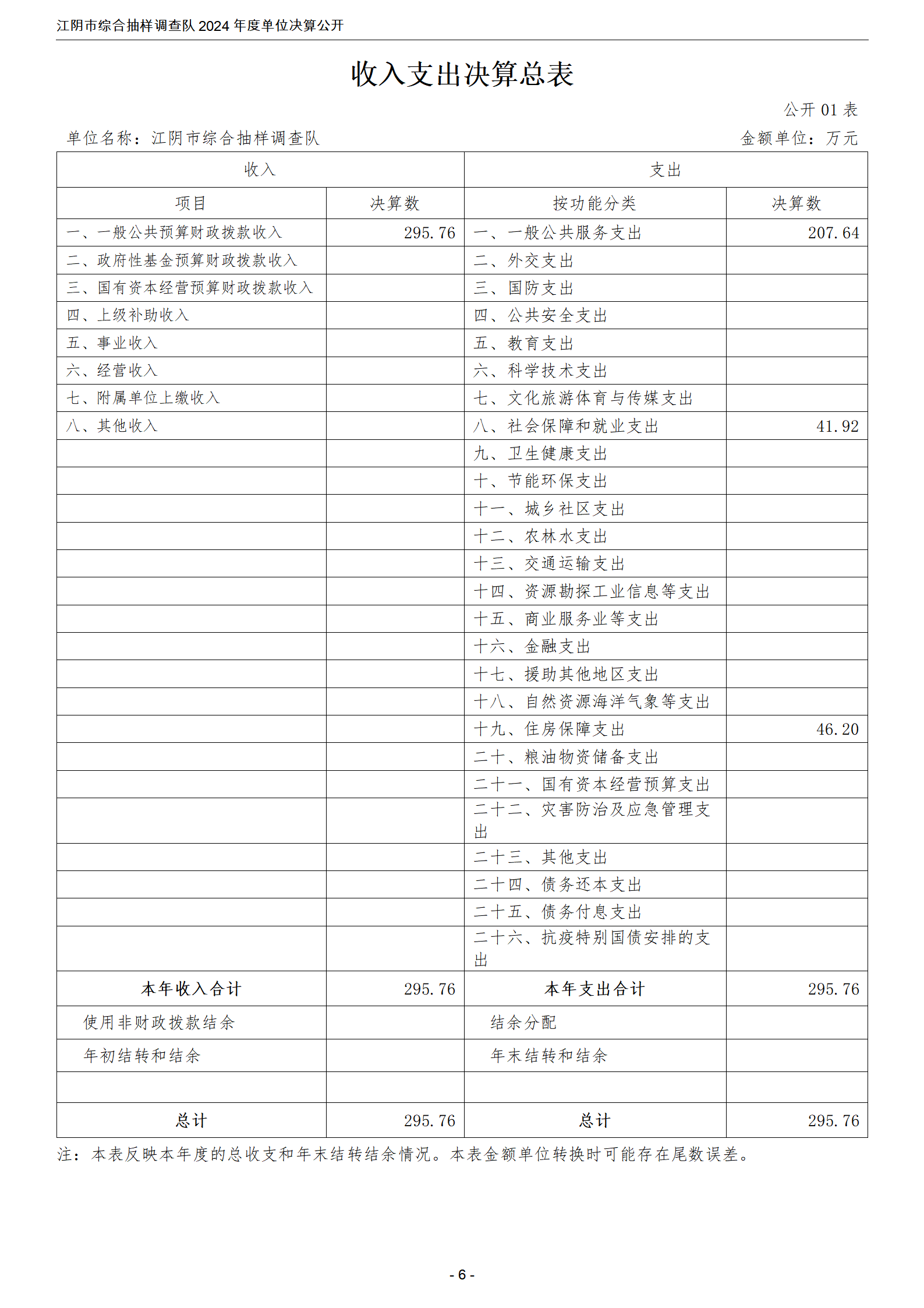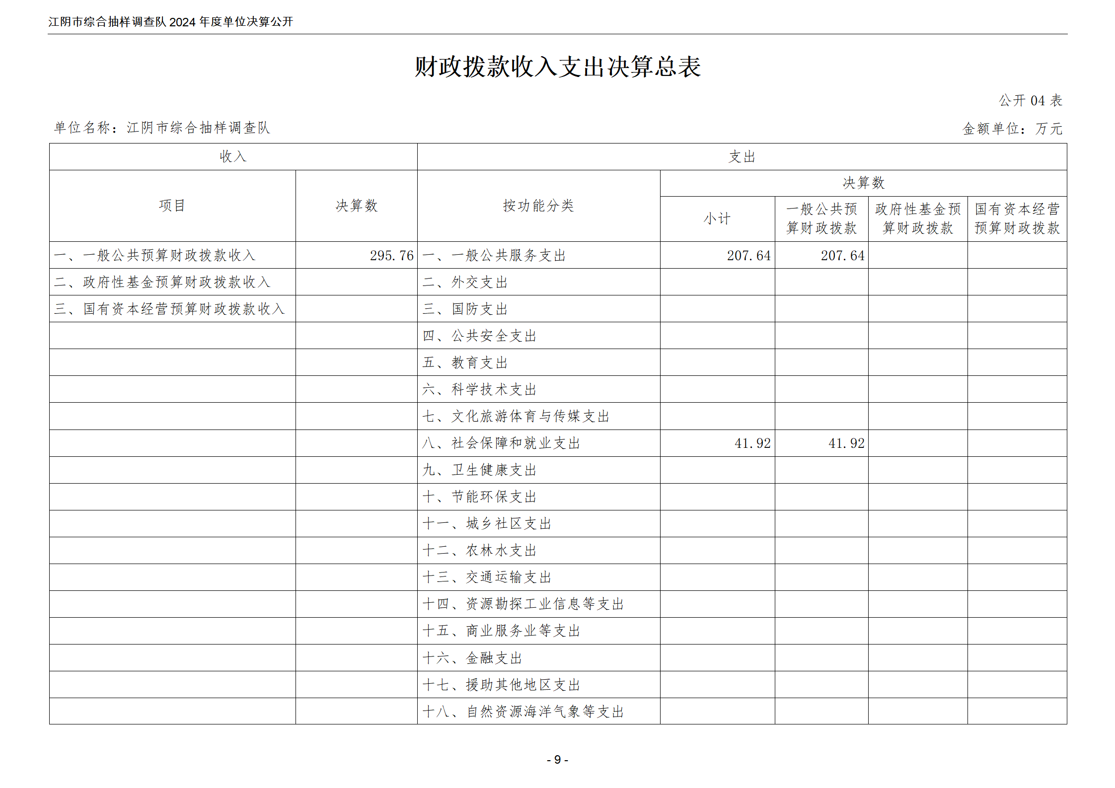 江陰市綜合抽樣調查隊2024年度單位決算公開