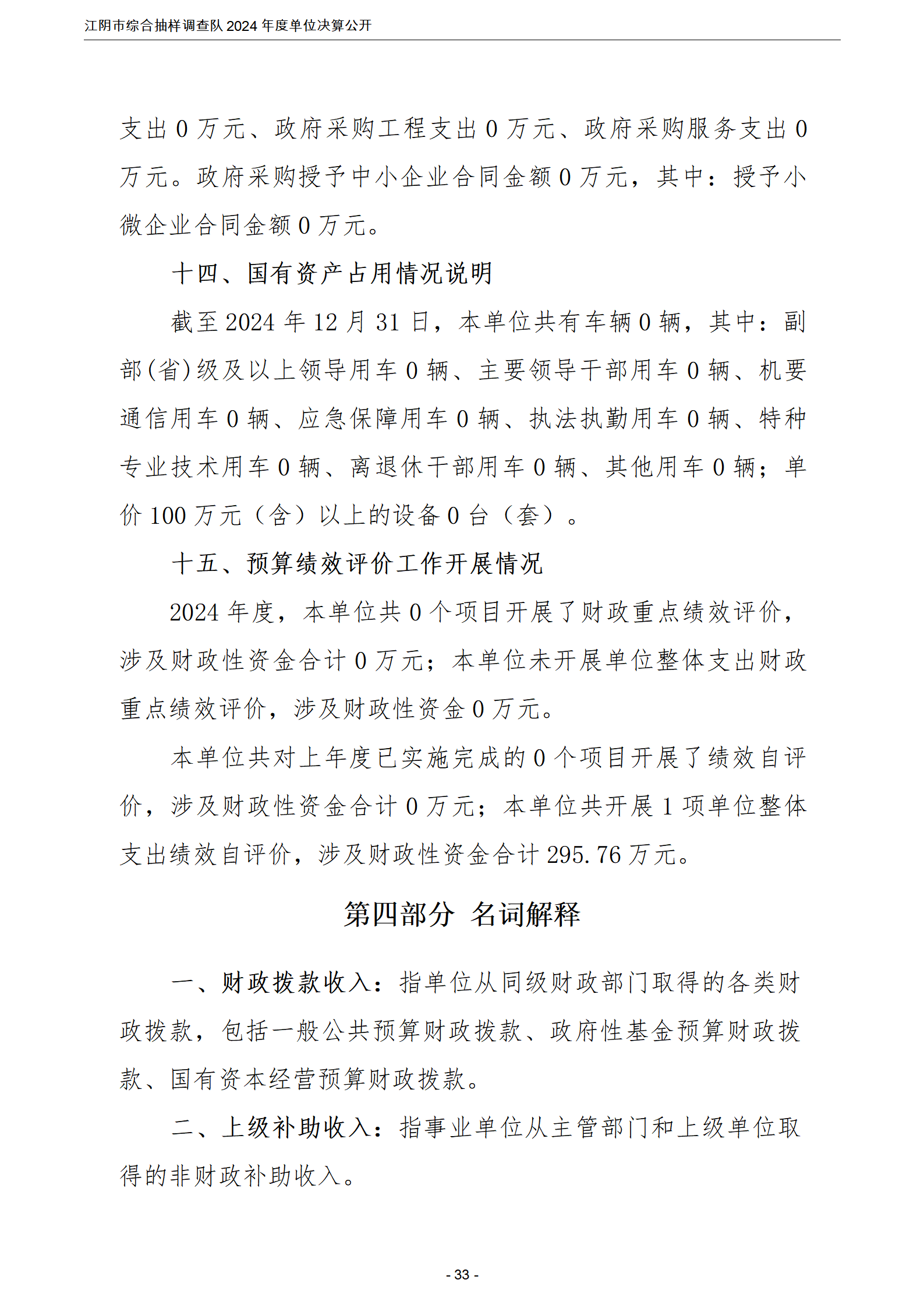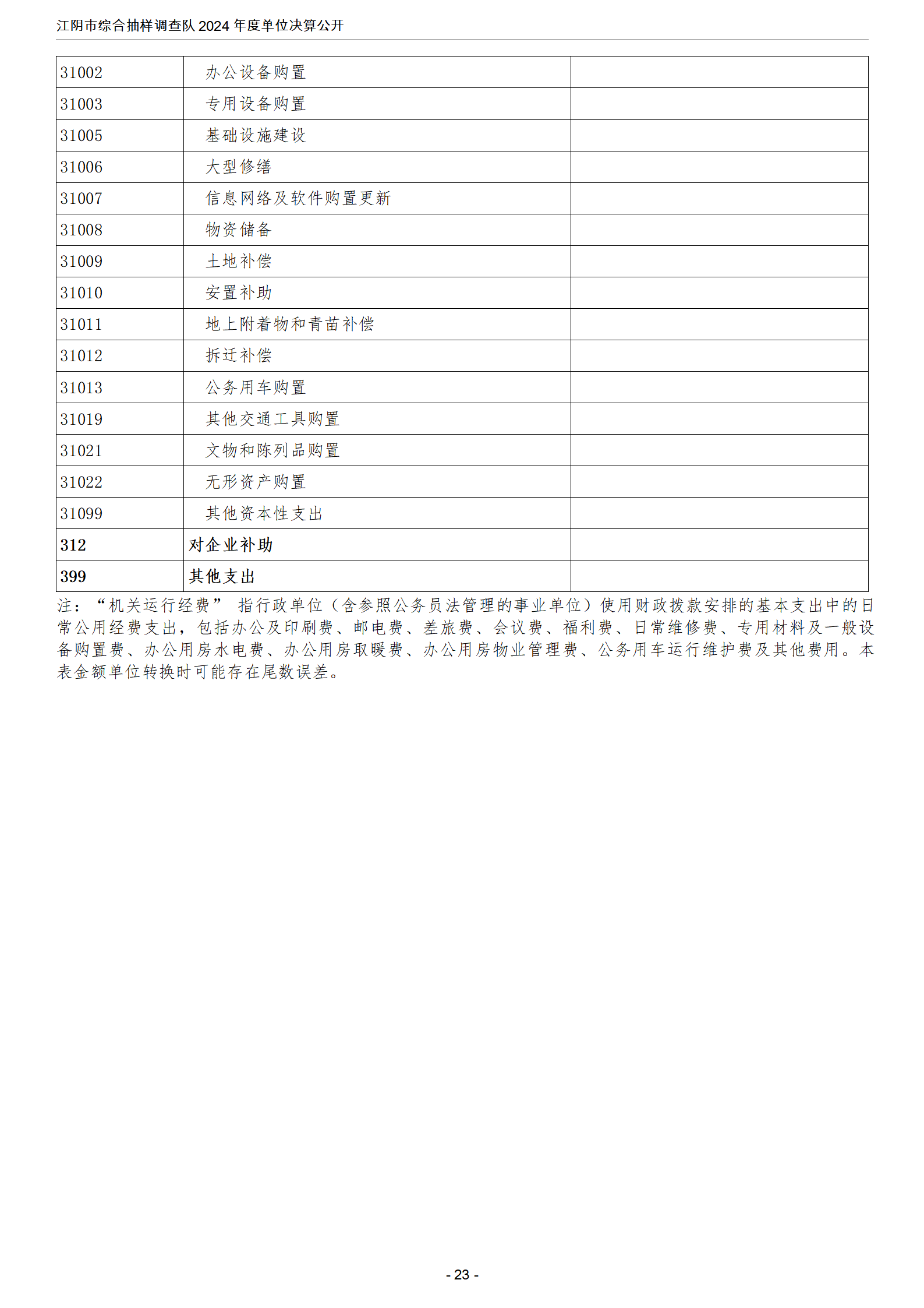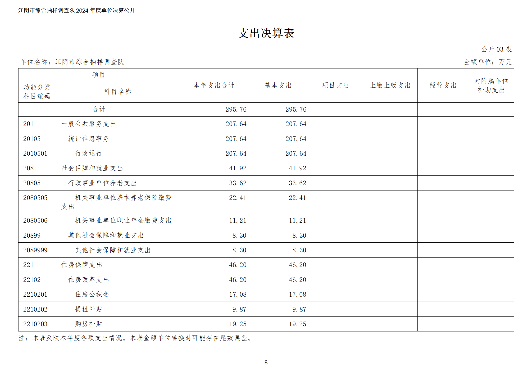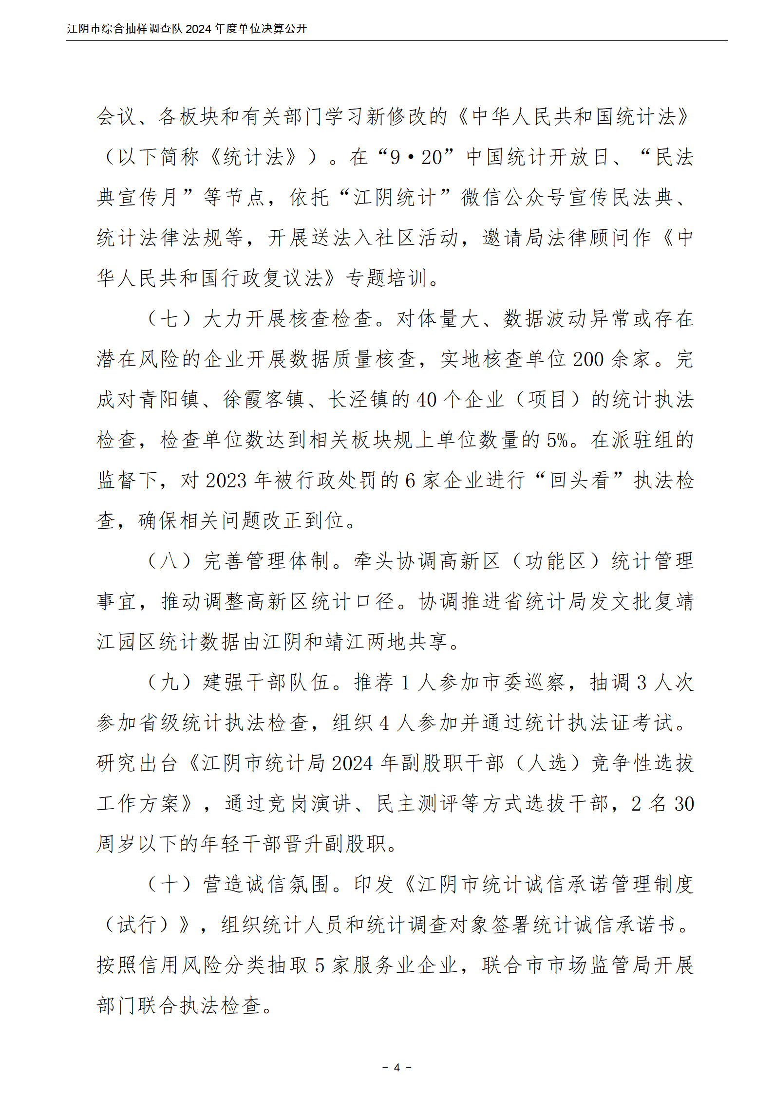 江陰市綜合抽樣調查隊2024年度單位決算公開