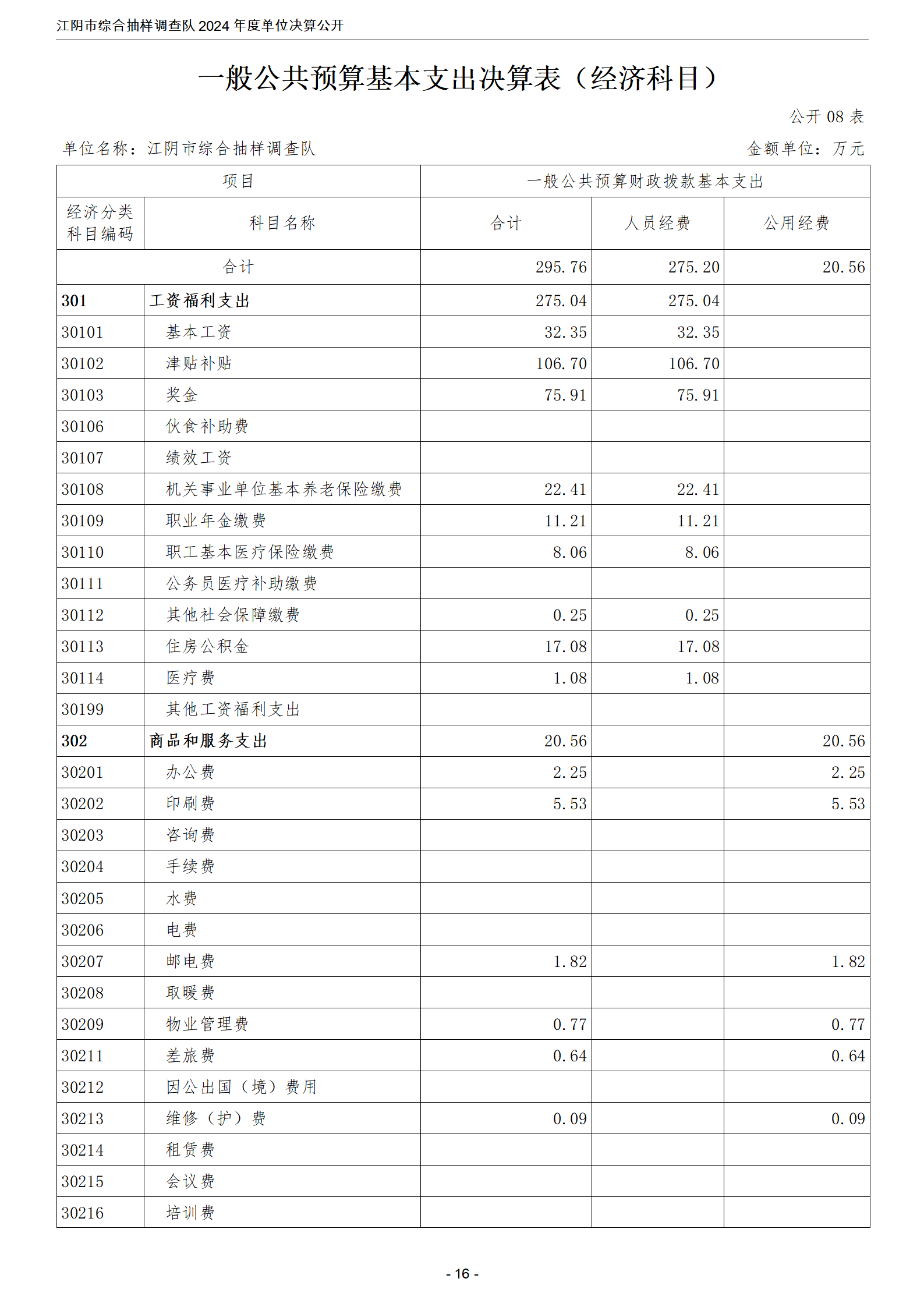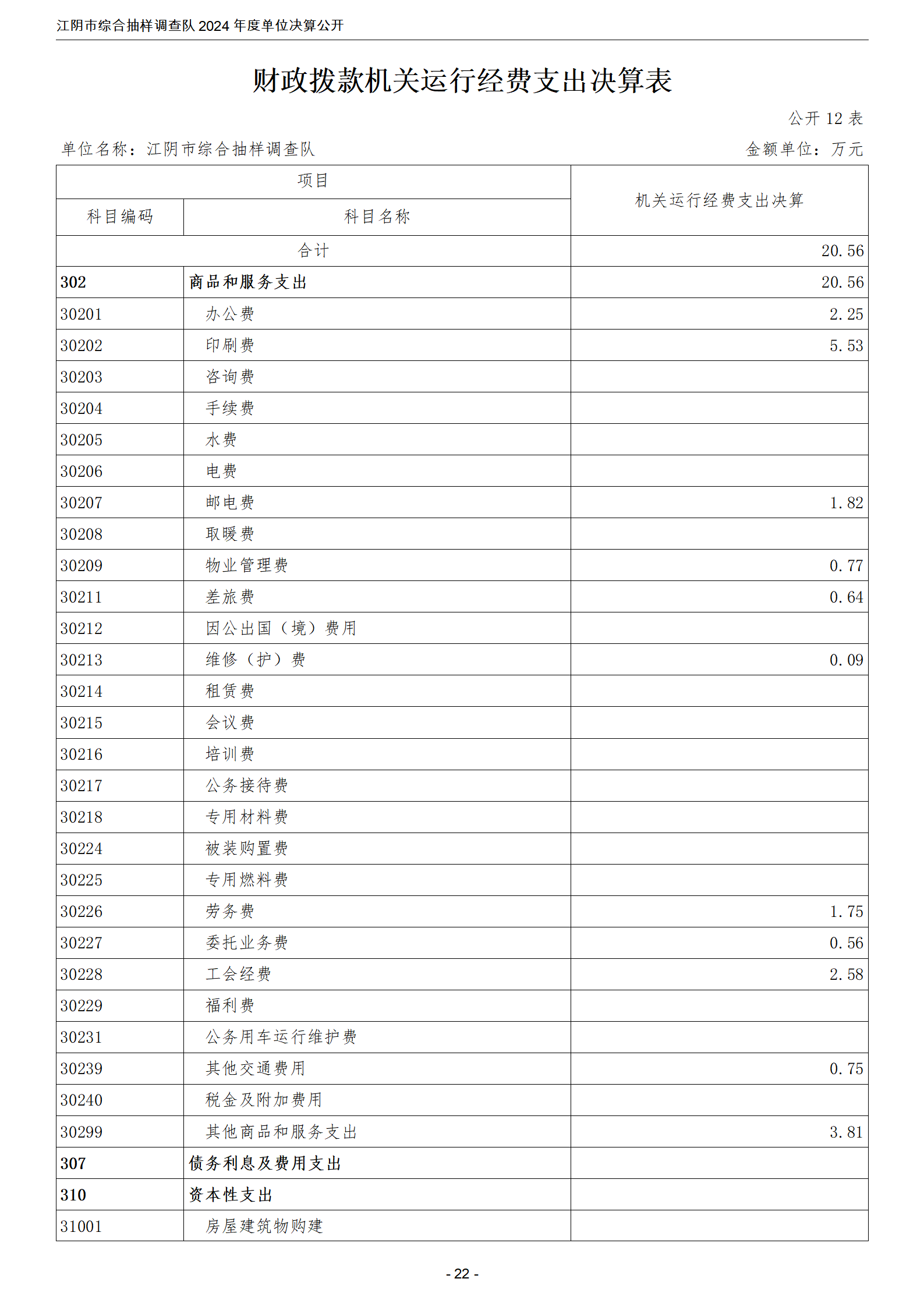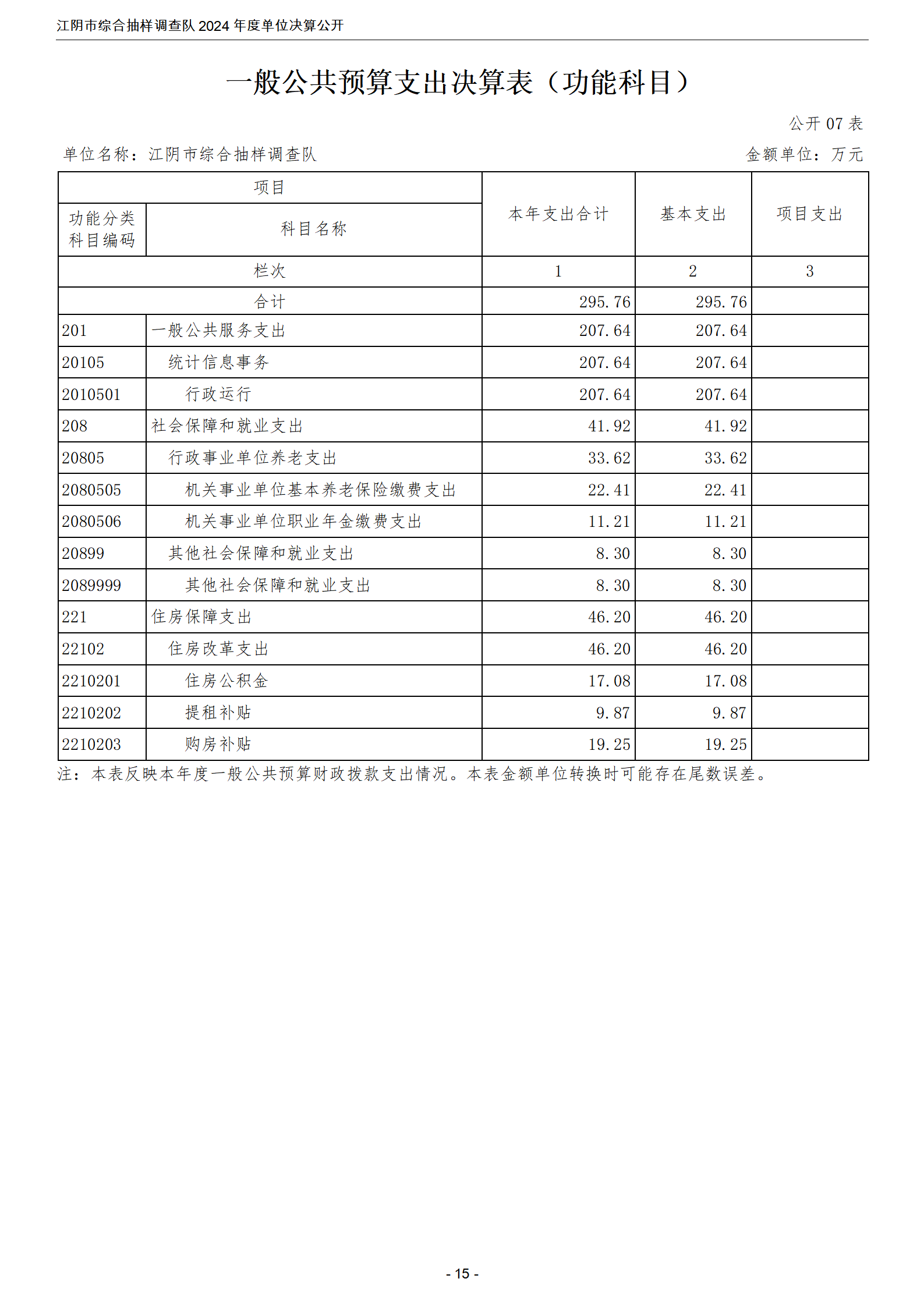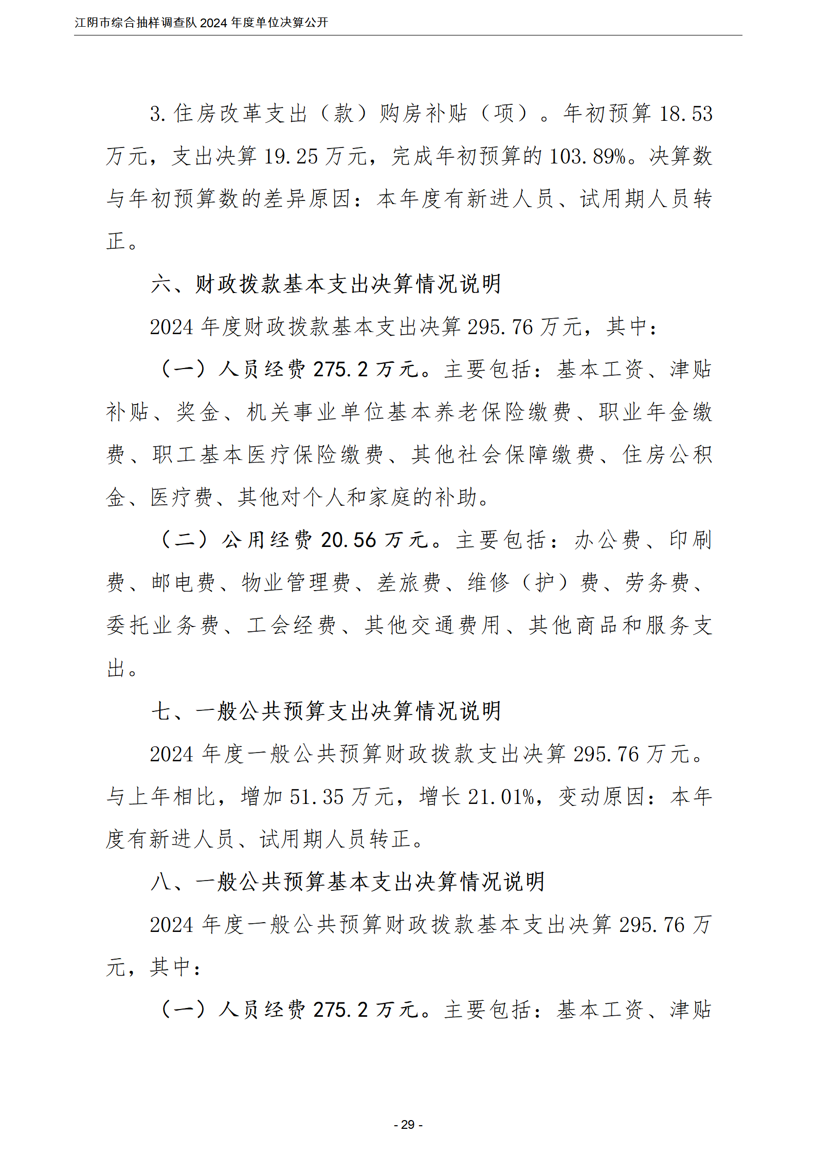 江陰市綜合抽樣調查隊2024年度單位決算公開