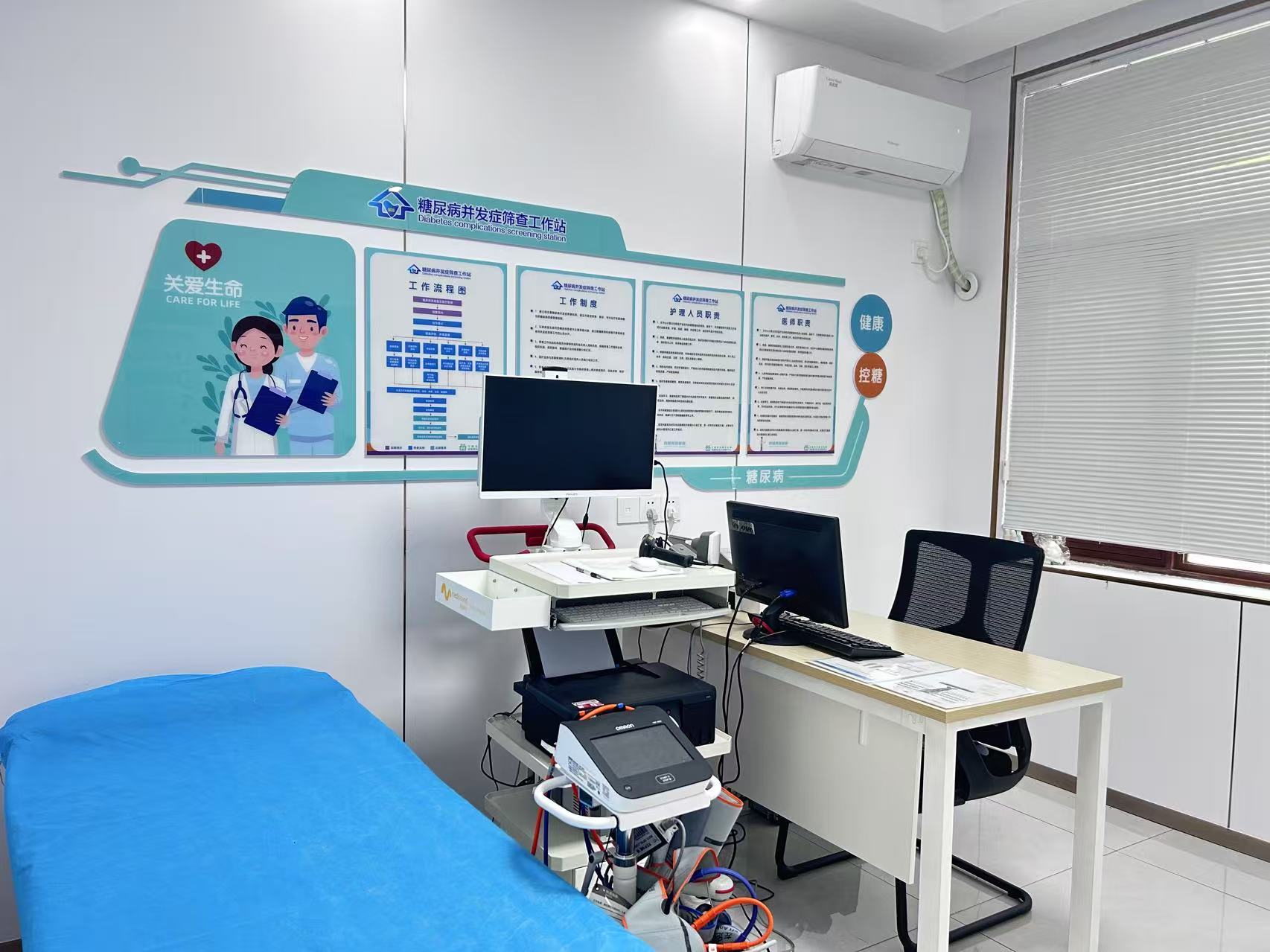 新橋衛生院糖尿病??婆鋫溲鄣紫鄼C、動態血糖監測系統、胰島素泵、四肢動脈硬化檢測儀、飛利浦彩超、心電監護儀、動態血壓計等設備,可開展糖化血紅蛋白、末梢血血酮、OGTT+胰島素/C肽釋放試驗、尿微量白蛋白、糖尿病眼底病變篩查、周圍動脈硬化檢測、血管超聲、胰島素泵治療、實時動態血糖監測等檢驗檢測項目,致力于糖尿病及其并發癥的診療。同時醫院堅持“醫防并重”理念,定期開展多元化糖尿病教育工作,為患者提供全方位綜合管理。
