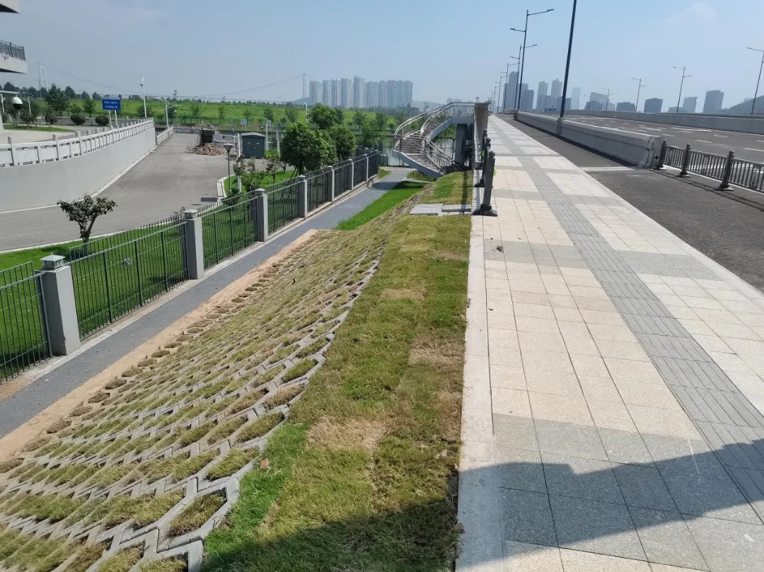 值得一提的是,項目在文富路—通江路段中央分隔帶位置創新采用明渠、箱涵與管涵相結合的形式,對原江鋒中心河進行改造。這一設計既完善了區域防洪排澇體系,提升了水環境質量,又實現了土地集約化利用,體現了工程建設與生態保護的和諧統一。