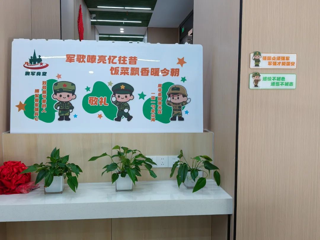 走進“擁軍食堂”,除了舒適的就餐環境,還有觸手可及的雙擁氛圍,餐桌上的擁軍座牌、墻壁上的擁軍圖板,于細微之處體現對軍人群體的關愛。