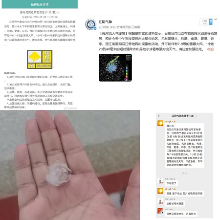 9月8日午后,江陰出現了一次明顯的強對流天氣過程,部分地區出現了短時強降水、7~9級雷暴大風和冰雹天氣。 針對此次強對流天氣過程,江陰市氣象局加強值班值守,局領導、臺長和值班員一起提前分析天氣形勢,密切監視雷達資料和上游地區自動站實況,加強跟蹤研判,早在11時30分就發布了強對流天氣提醒,11時38分提前發布強對流黃色預警信號“預計今天下午到夜里我市大部分地區將出現雷電活動,并可能伴有7-9級的雷暴大風、1小時20到40毫米的短時強降水和局地小冰雹等強對流天氣”。 預警信號發布1小時后,12時35分左右收到氣象愛好者信息反饋,我市華士鎮和周莊鎮等地出現了直徑約1~2厘米的冰雹。同時,部分地區出現了短時強降水和雷暴大風,最大小時雨強45.1毫米(月城鎮),最大陣風9級(華士鎮陸橋)。此次強對流天氣過程,天氣實況和預警信息預報內容高度吻合,取得了非常良好的預警效果和服務成效。