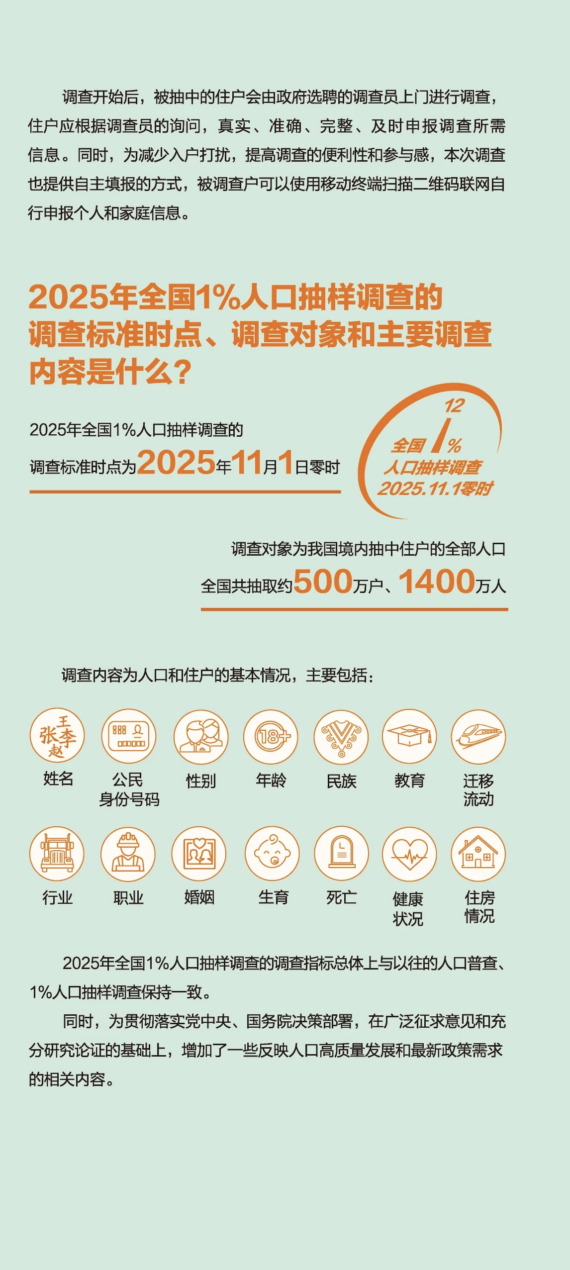 2025年全國1%人口抽樣調查正在進行,9月15日至10月15日,調查員會進行住房核查,核實抽中調查的住房是否有人居住,11月1日至11月15日,調查員將進行入戶登記,江陰全市有137個村(居)委會,196個調查小區被抽取,涉及萬余戶,請大家要注意配合。