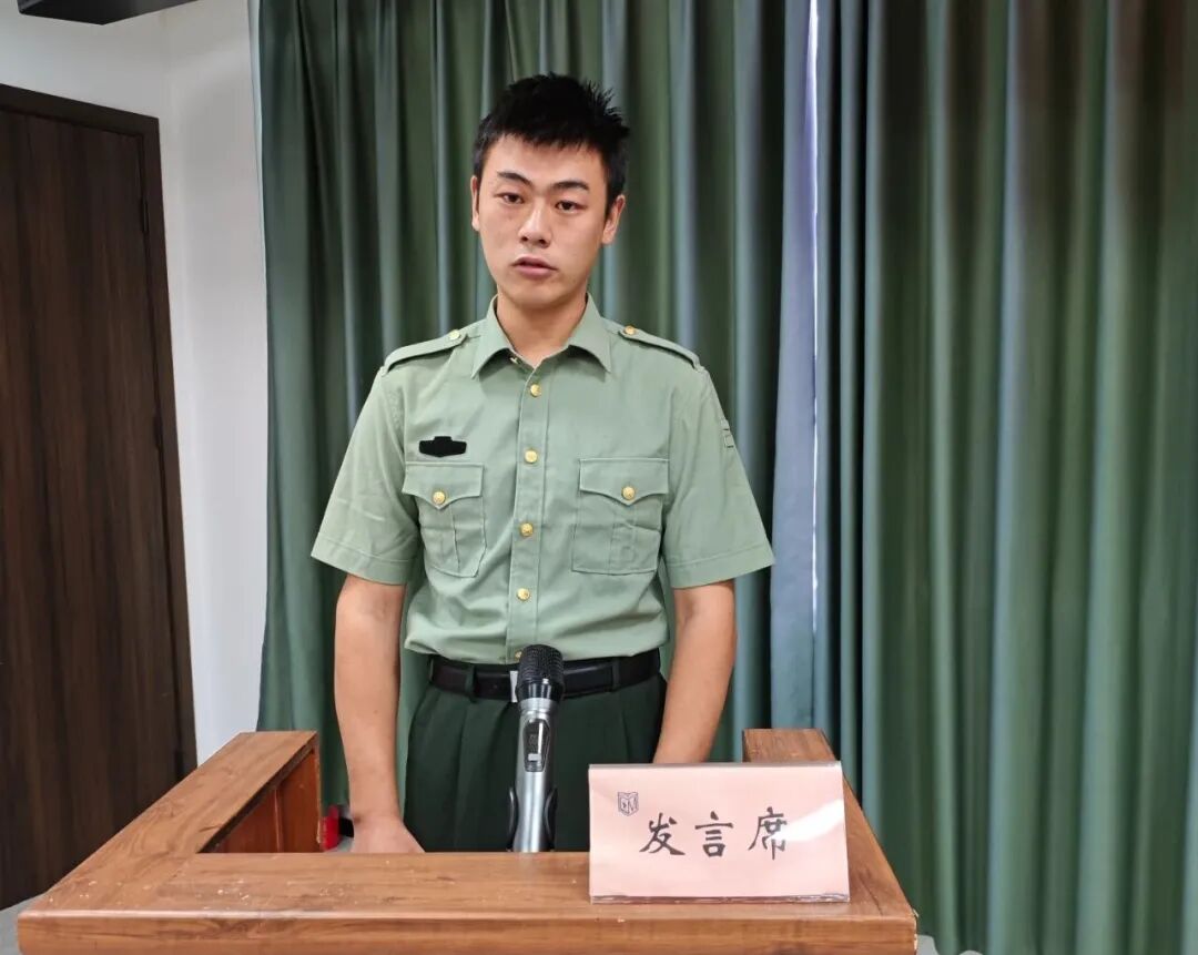 退役士兵代表舒鑫上臺發言,分享了軍旅生涯的難忘記憶,表示未來將把在軍營中淬煉的韌勁與紀律性融入家鄉建設中,以軍人標準繼續“沖鋒”,不辜負家鄉期望。