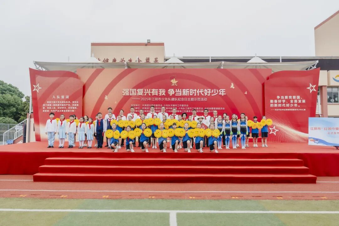 10月13日,“強國復興有我 爭當新時代好少年”——2025年江陰市少先隊建隊紀念日主題活動在江陰市璜塘實驗小學舉行?;顒酉蛉w少先隊員致以節日的問候,希望隊員們傳承紅色基因,將“強國復興有我”的誓言化作行動,為家鄉爭光、為祖國添彩!在莊嚴的入隊儀式上,215名新隊員佩戴上鮮艷的紅領巾,在隊旗下莊嚴宣誓,正式加入中國少年先鋒隊。杰出校友陸生禮深情寄語新隊員熱愛閱讀、熱愛科學、熱愛祖國。“時刻準備著!”嘹亮的呼號聲,吹響了隊員們新征程的號角。