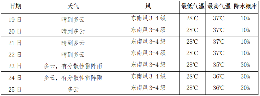 18-22日,我市晴熱少雨,23日后多云天氣為主,偶有分散性雷陣雨。